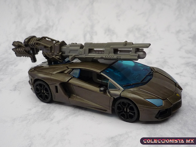 La forma alterna, un Lamborghini, es bastante precisa. El color no es el mismo al de la película, pero ninguna figura de AoE respeta los tonos originales. Las ruedas giran, aunque están tan a ras del suelo que a veces se atoran, si es que no está bien transformado. El color azul de los vidrios se ve muy bien, pero el gran detalle que omitieron fue ponerle ventanillas a las puertas.